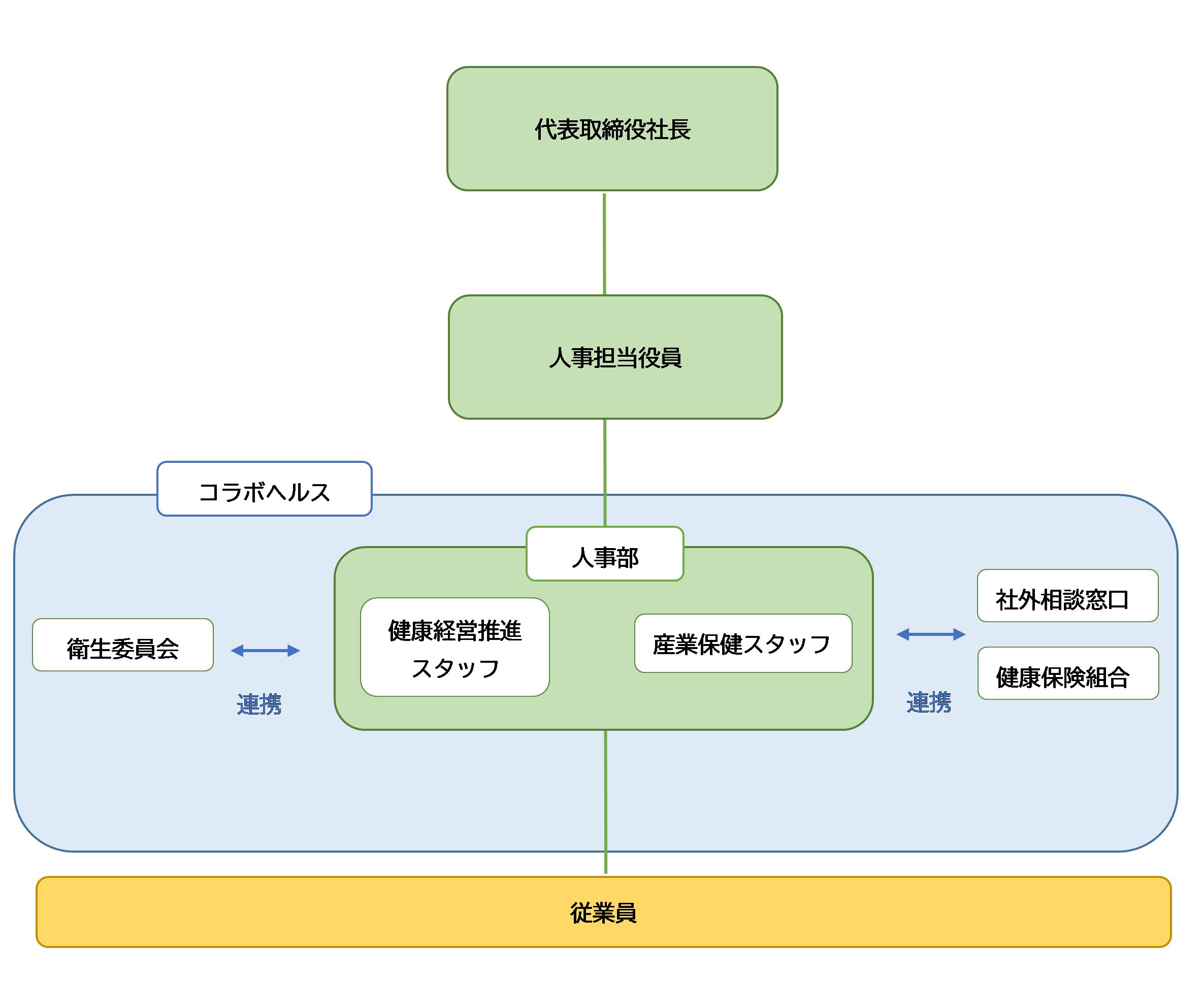 当社は、社員の健康増進を経営的な視点でとらえ、その実現に積極的に取り組むことを宣言します。