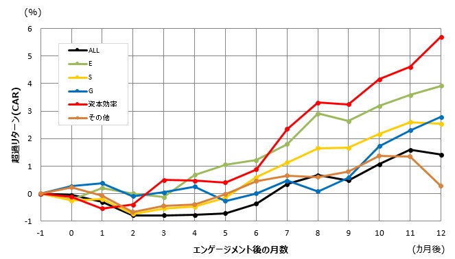 これらの結果から、当社のエンゲージメントが企業行動に実質的な変化をもたらし、それが超過リターンの向上につながっていることが示唆されます。