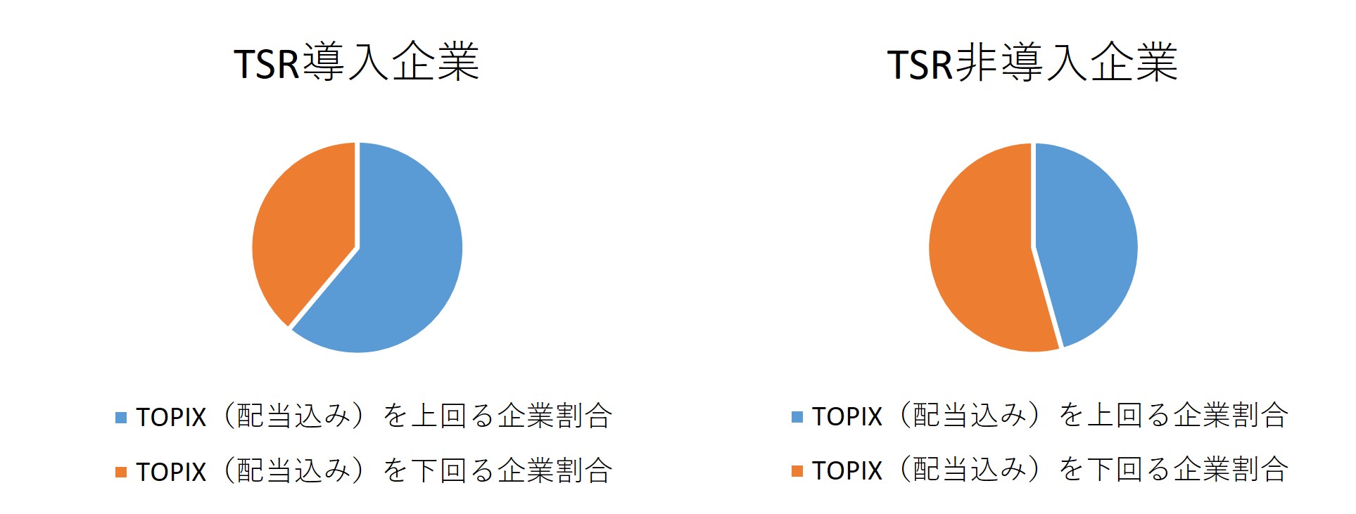 - 配当込みTOPIXの47.2%と比較すると、両グループともにアウトパフォームしていますが、TSR導入企業の優位性が顕著です。