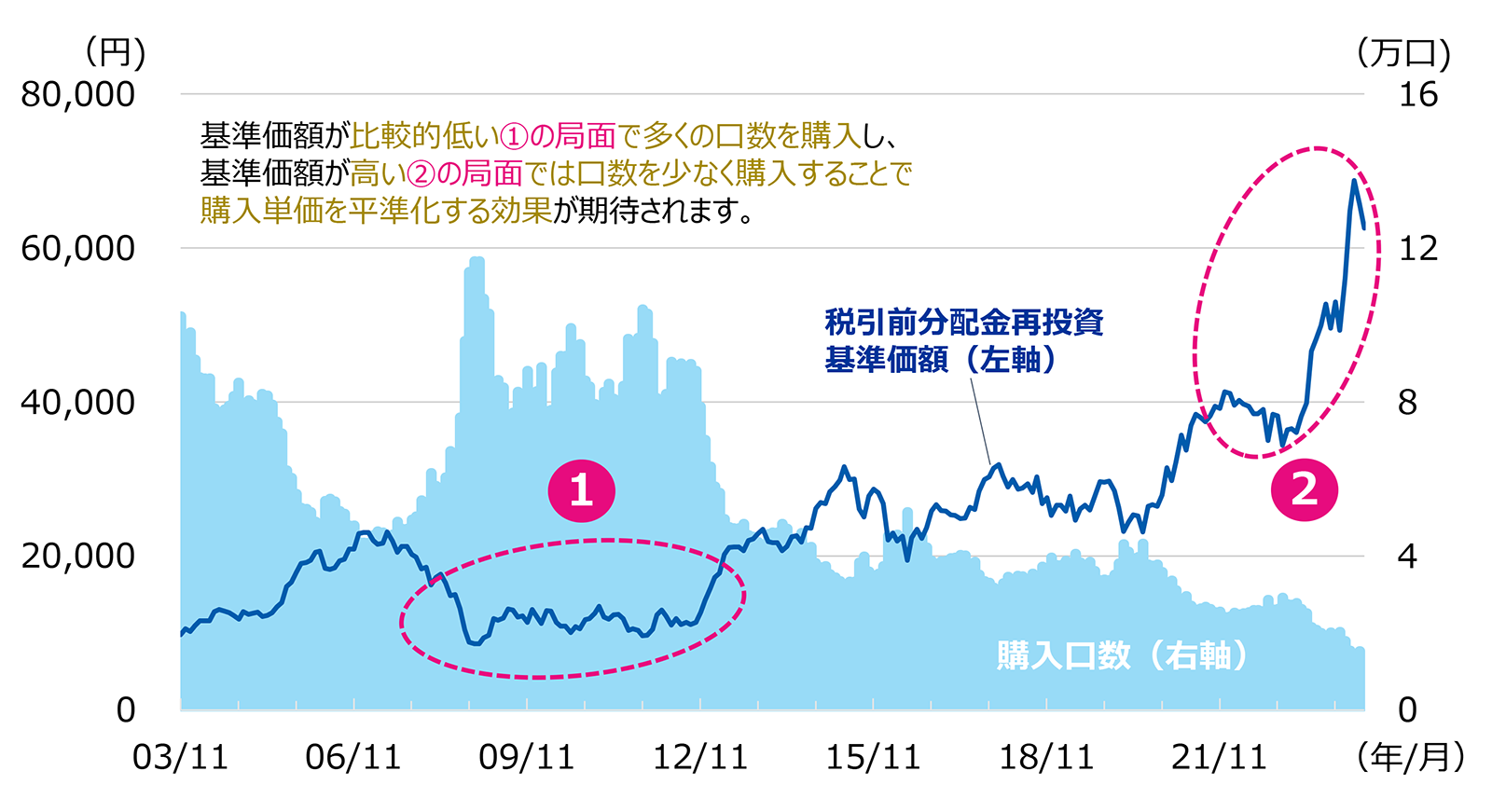 ファンドは計算期間中の基準価額の変動にかかわらず分配を行う場合があります。分配金額は運用状況等により変動します。