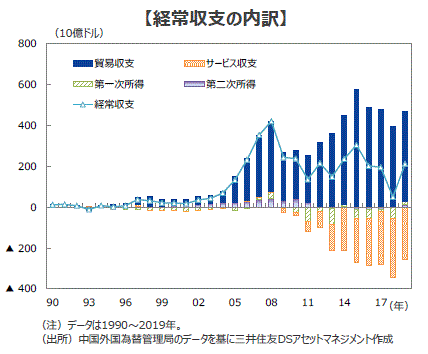 ■最近の中国の経常収支黒字は2015年をピークに2018年にかけて減少傾向にありましたが、2019年に入り黒字基調が拡大しています。