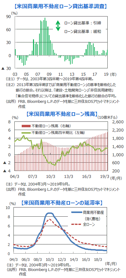 ■米連邦準備制度理事会(FRB)が四半期ごとに行っている市中銀行の融資担当者への融資基準調査を見ても、市中銀行は15年以降、商業用不動産ローンの貸出基準を緩やかながら引き締めていることが分かります。