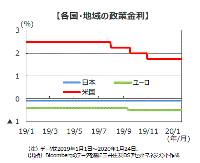 ■米景気が緩やかに拡大するなか、インフレが落ち着いているためFRBは利下げを停止し、2020年にわたり政策金利を据え置く見通しです。