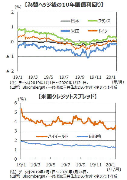 ■2020年は、ドル円ヘッジコストの一段の低下が見込みにくいことに加え、近年、ドル円相場の変動幅が縮小しており、円の先高観が薄れていることから、国内投資家にとって為替オープンの外債投資も有力な選択肢となるでしょう。弊社は2020年の見通しについて、ドル円をレンジ相場、米長期金利は小幅な上昇にとどまるとみています。