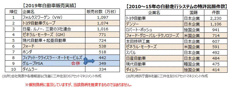■2019年12月には欧米フィアット・クライスラー・オートモービルズ(FCA)と仏グループPSAが経営統合で合意しました。両社の世界販売台数を合わせると、世界4位の自動車連合が誕生することになりました。この背景には、規模拡大による開発資金確保に加え、次世代車開発に関心を示す「GAFA」と呼ばれる米IT大手など異業種と連携する場合でも、一定の事業規模を持たないと対等な関係は築けないことなどがあります。またEUは二酸化炭素(CO2)排出規制が強化されますが、出遅れた電動化への取り組みを強化するという狙いもあります。