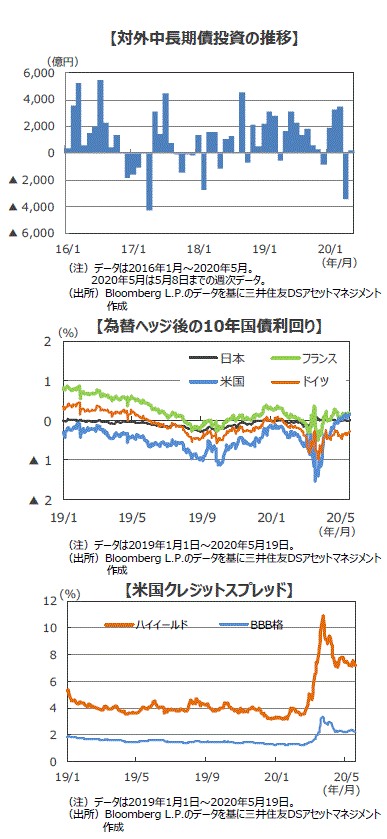 ■2020年に入り、国内投資家の外国債券への投資が活発化しました。日本の10年以下の国債利回りがマイナス圏に沈むなかで、利回りを得ようとする国内投資家が外債投資を選択していることが背景と考えられます。しかし、4月は新型コロナ感染拡大の影響などから売り越しに転じました。