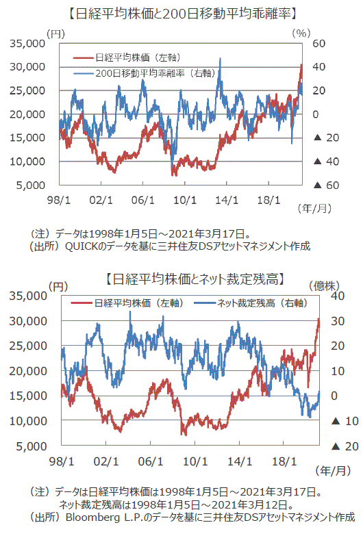 ■現状をテクニカル指標からみると一部に強い過熱感がみられます。日経平均株価の200日移動平均乖離率は、2月14日に26.34%をつけました。