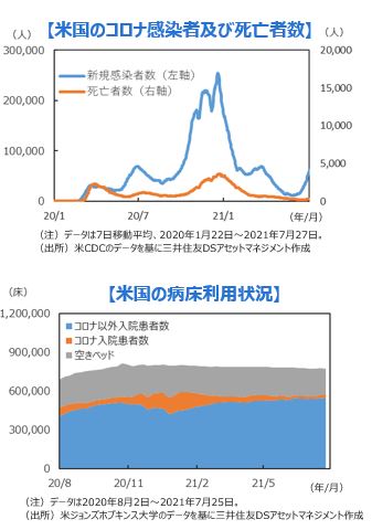 ■コロナに感染しても重症化するリスクは低く、死に至るケースも限定的で、更にワクチン接種の進展でこうした傾向に今後拍車がかかる可能性が高いことから、デルタ型が従来型との比較で著しい毒性を有しない限り、米国社会や米国株にとってコロナ禍は過去のものになりつつあると言えそうです。
