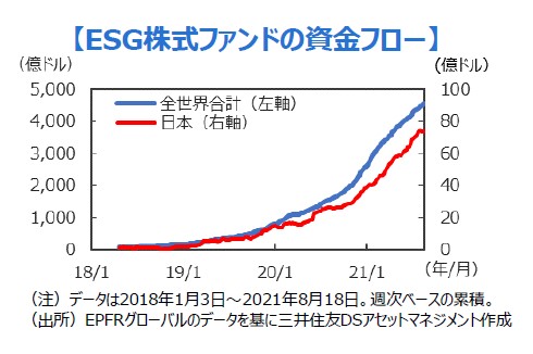 ■気候変動関連は、外国人投資家にとっても関心の高い投資テーマです。関連ビジネスの拡大や主要各国政府による積極的な取り組みもあって、今後も息の長い投資テーマとなることが期待されています。こうした世の潮流を背景に、ESGファンドへの資金流入が世界的に続いていますが、日本株も決して例外ではありません。
