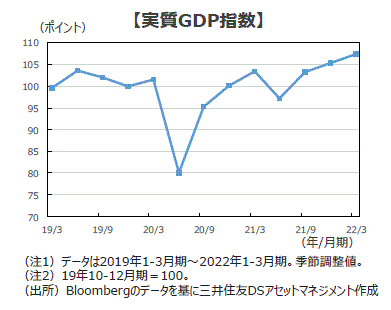 ■弊社で季節調整を行い、コロナ禍以前の19年10-12月期を基準(=100)に指数化したところ、22年1-3月期には107.4と、コロナ禍以前の水準を3四半期連続で上回り、かつ、上昇傾向を示しました。さらに、4-6月期には、昨年の感染拡大時との比較によるベース効果で、前年同期比成長率は2桁増が見込まれます。