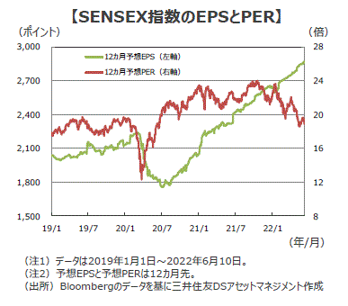 ■こうしたインド株のサポート材料に加えて、前述の通り、弊社は、物価高と金融引き締めが続くなかでも景気拡大が継続するとみていることから、中長期的なインド株の上昇基調は変わらないと考えています。