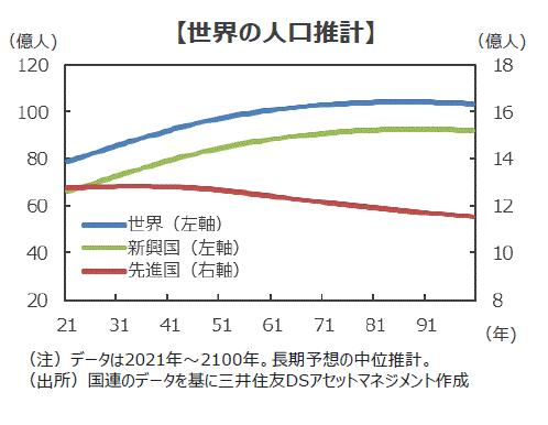 ■こうした食糧不足は、今後も世界人口の増加が見込まれるため、収まる気配がありません。国際連合(国連)による最新の推計では、現在約80億人の世界人口は2058年には100億人を突破し、その後も100億人を超える水準が続くものと予想されています。