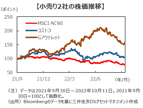 ます。一方、仕入れ価格の上昇と消費者の節約志向の板挟みが懸念されるS&P500食品流通指数は▲6.4%の下落となっています(データは10月11日現在)。