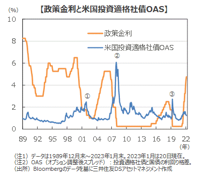 (3)2023年の米国投資適格社債はスプレッドが緩やかに縮小すると予想