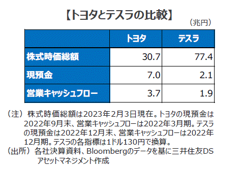 ■こうした事態を受け、欧米の主要メーカーはアクセル全開でEVシフトを進めています。EV専業のテスラは2022年に前年比47%増の136.9万台のEVを生産し、メルセデスベンツはEV向けに新しく開発したプラットフォーム(フレーム、エンジン、トランスミッション、サスペンションなどの車の基本構造)を活用した高級セダンEQSを市場に初めて投入ました。また、ゼネラルモータース(GM)も2025年までに年間100万台のEVを生産すると発表しました。