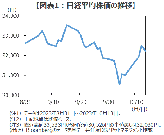 ■米連邦準備制度理事会(FRB)は金融政策を決める9月19日、20日のFOMCで政策金利を据え置く一方、来年と再来年の政策金利の見通しを引き上げ、「利上げ局面が長期化する」とのメッセージを発しました。これをきっかけに市場では、米長期金利が急騰し、日米の株価は一時大きく調整しました。しかし、こうしたFRBのタカ派姿勢は、足元で急速にトーンダウンしつつあります。