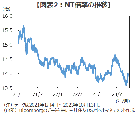 ■なお、足元の反発局面では日経平均の強さが目立つ展開となっており、NT倍率(日経平均をTOPIXで除して算出する指数)も急回復しつつあります(図表2)。今後、「FRBの急旋回」をうけて海外投資家のリスクオンが本格化するようなら、日本の株式市場も日経平均主導で再び上昇トレンドが鮮明となってもおかしくないでしょう。