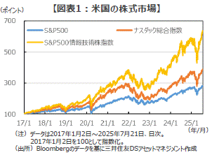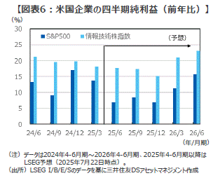 ■今後について、トランプ政権が検討している半導体関連製品向けの追加関税措置の動向は留意点ですが、AI半導体の対中輸出規制が一部緩和される見通しとなるなど前向きな動きもみられます。今後公表される米国の主要ハイテク企業の決算においても、AI関連需要の拡大に支えられた力強い利益成長が期待できそうです。
