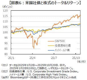 ■2025年は、トランプ政権の保護主義的な通商政策、ウクライナや中東情勢などの地政学リスク、米国の雇用市場悪化による景気減速懸念など、不確実性が高まる場面が見られました。そのなかで米国社債のトータルリターン(価格変動損益+クーポン収入と再投資分)は、比較的安定した推移を示してきたようです(図表6)。