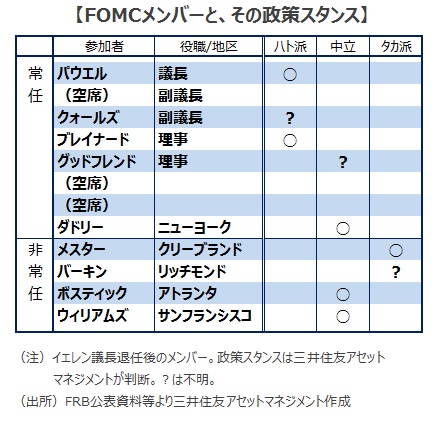 ■こうして見ると、FOMC内のタカ派、ハト派は勢力が拮抗しています。さらに、中立の立場をとるダドリーNY連銀総裁は今年半ばまでに退任する意向です。その後任を含め、空席を埋める新しいメンバーが誰になるのか、今後の注目点といえます。