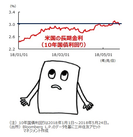 ■米国の債券市場では、『長期金利』(10年国債利回り)が、2018年4月24日に3.00%をつけました。『長期金利』の3%台乗せは、13年末以来およそ4年5カ月振りのことになります。その後も概ね3%前後の水準で推移しています。