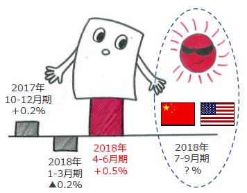 国内総生産(GDP)は、国内で一定期間にどれだけの財やサービスが生み出されたかを示し、経済活動の規模や動向を総合的に示す指標として用いられます。中でも、物価変動の影響を取り除いた『実質GDP』が注目されます。2018年4-6月期の『実質GDP』成長率は内需がけん引し、前期比+0.5%と、2四半期ぶりにプラスとなりました。ただし、7-9月期は猛暑や米中貿易摩擦の影響で回復の持続力が試されそうです。