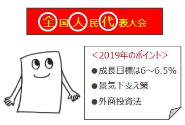 ■3月5日から開催された中国の『全人代』は、最終日の15日、北京で約3,000人が参加して、8つの議案を採決し、閉幕しました。2019年の経済成長率の目標は、前年の「6.5%前後」から引き下げられて、「6.0~6.5%」が採択されました。また、大規模な減税やインフラ投資の促進などの景気下支え策などを含んだ、今年の予算案も承認されました。