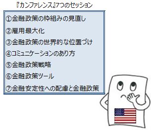 ■具体的には、現在のFRBの金融政策の枠組みについての検証や、雇用最大化についての議論、市場参加者とのコミュニケーションが適切か(経済見通しやドットチャートの是非)、金融政策戦略(インフレ目標政策より優れた代替ストラテジーが存在するか否か)など7つのセッションと2つのパネルディスカッションにより構成され、討議が進められました。