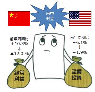 ■9月2日に発表された2019年4-6月期の『法人企業統計』によると、全産業(金融・保険業除く)の設備投資は、前年同期比+1.9%と11四半期連続のプラスとなりました。ただし、内訳をみると、非製造業は同+7.0%と堅調を維持したものの、製造業が同▲6.9%と、2017年4-6月期以来のマイナスとなりました。米中貿易摩擦の激化により情報通信機械が同▲43.4%と落ち込みが目立つなど、製造業は投資に慎重になってきたとみられます。