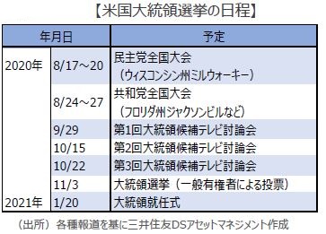 ■過去の『大統領選挙』を見ると、現職大統領は知名度が高く、資金力が豊富なことから再選に有利とされる一方、経済が落ち込み、支持率が低下すると再選が厳しくなると言われています。年初までは好調だった景気が新型コロナの影響で大きく落ち込んでおり、足元、トランプ大統領の支持率は低下しています。新型コロナや人種差別問題に対する対応への批判は、トランプ大統領にとって、前回支持を得たラストベルト(さびついた工業地帯)や無党派層の投票行動に不利な影響を与えそうです。但し、バイデン前副大統領も存在感を示せていないことや、トランプ大統領は政策を打てる強みを残していることから、最後まで目が離せません。