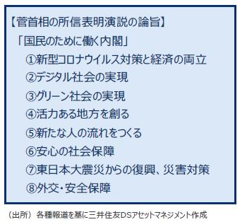 ■こうしたクリーンエネルギーへの転換やデジタル化を推進する規制改革は、『スガノミクス』の成長戦略の旗印となりそうです。『スガノミクス』の推進により日本企業の長期的な競争力が向上することが期待されます。