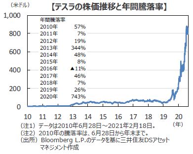 ■米国EV(電気自動車)メーカーのテスラの株価推移を見てみたいと思います。
