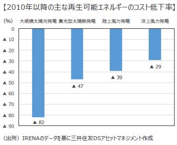 ■今年に入り、欧州だけでなく、米国や中国といった世界の大国が、環境対策に本腰を入れ始めました。米中が本気になったのは、地球温暖化などの環境問題に対する政治的なインセンティブの高まりや自国産業の競争力維持が背景にあると考えられ、世界各国で環境への投資拡大が続くでしょう。こうした中、発電コストが大幅に下がった『再生可能エネルギー』の関連事業の拡大余地は大きいと考えられます。