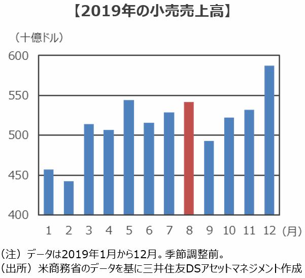■米国では9月の夏休み明けに備えて『バックトゥスクール商戦』と呼ばれる消費が8月に盛り上がります。季節調整前の小売売上高を見ると、8月の消費は5月のドライブシーズンと並び、年末商戦に次いで消費が盛り上がる月となっています。中でも書籍や事務用品は8月の消費が例年トップとなっています。