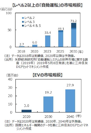 ■「EVシフト」により『自動運転』はより安全に、そして『自動運転』によりEVは更にエコになっていくため、2つの流れは相乗効果で加速していくことになりそうです。