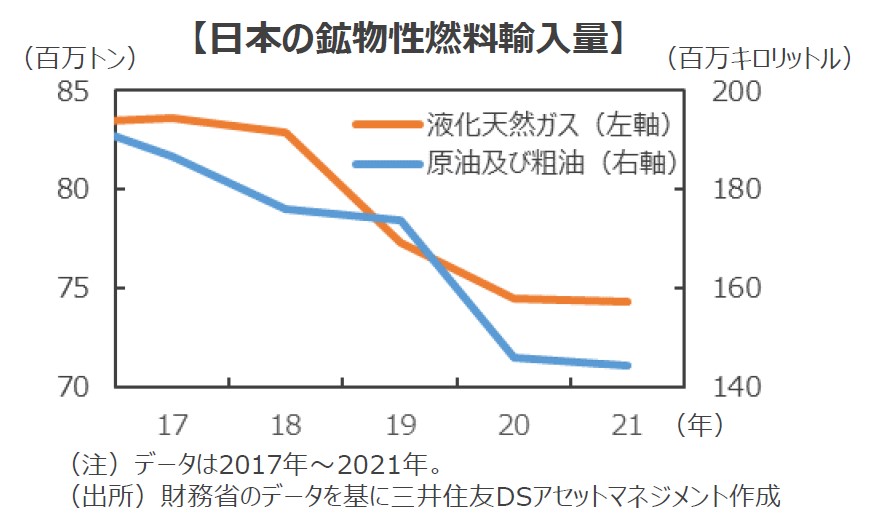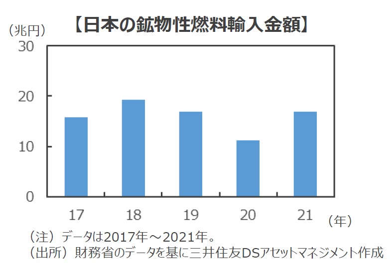 ■エネルギー価格の上昇から、昨年の日本の化石燃料輸入数量は前年比で微減となった一方で、輸入金額は約5割増加して16兆9,198億円となりました。