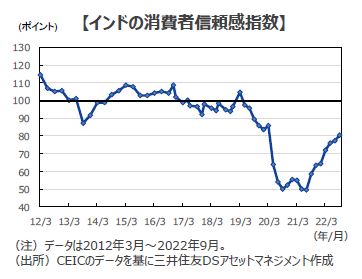 ■インドの9月の消費者物価上昇率は前年同月比+7.4%とインフレが加速しているにもかかわらず、『ディワリ』商戦が好調な背景には、ペントアップディマンドと消費者心理の改善があると考えられます。