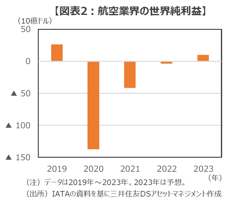 ■また、同協会は、世界の航空会社による2023年の純利益予想が98億ドルになるとの見通しを示しました。前回2022年12月発表の47億ドルから2倍以上に上方修正しました。