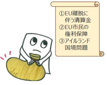 EU離脱に伴う清算金、EU市民の権利保障、アイルランド国境問題が優先課題