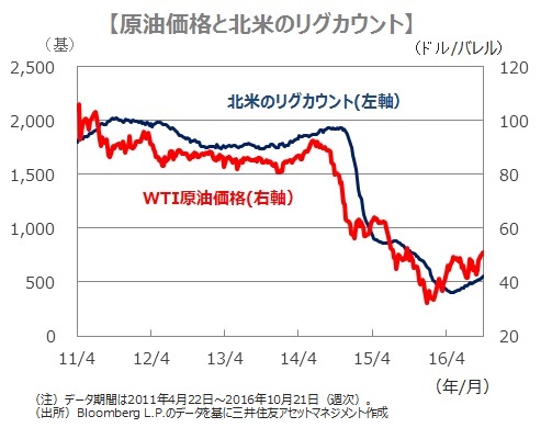 ■「原油価格」をWTI先物価格で見ると、年初に1バレル当たり30ドル台を割り込むまで下落しましたが、最近はOPECによる減産合意への期待の高まりなどから、同50ドル近傍まで回復しています。