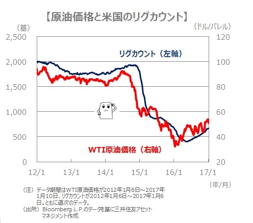 ■需給改善期待などから、原油価格は底堅い動きが予想されますが、価格がバレル当たり55~60ドルを超えてくると、「シェールオイル」の生産が拡大する公算があるため、上値も抑えられると見られます。当面、価格は同50ドル近傍での推移となりそうです。