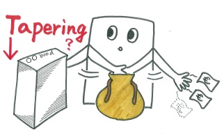 『テーパリング(tapering)』とは、量的金融緩和政策における金融資産の買い入れ額を縮小することを指します。一般に、中央銀行は金融緩和として政策金利の引き下げを行います。主要国・地域では、これに加え国債や社債などの有価証券を買い取り、市場に資金を供給する量的金融緩和を実施してきました。最近では、欧州で景気が回復基調にある中で、金融政策を正常に戻すべく、『テーパリング』が検討されています。