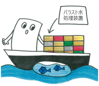 ■バラスト水とは、船舶の船底に積む重しとして用いられる水です。船舶が空荷で出港する時、海水などが積み込まれ、貨物を搭載すると排出されます。バラスト水に含まれる生物が本来の生息地でない場所で排出されることによる生態系の破壊を防止することが目的です。