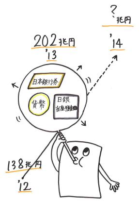 2013年末のマネタリーベースは202兆円と、目標を達成しました。黒田日銀総裁は、昨年12月の講演で、「2年後(2014年末)のマネタリーベースは名目GDPの約60%に達し、米国や英国の22%を遥かに凌駕する規模であり、歴史的にも例がない金融緩和」だと述べています。こうした強く明確な公約とそれを裏付ける「異次元の金融緩和」によって、これまでのデフレマインドの悪循環を断ち切り、物価の先高感を醸成することが日銀の狙いといえます。