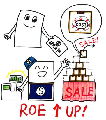 ■ROEは、売上高を増やすこと、コストカットなどで利益率を上げることなどにより上昇させることができます。低コストで高採算製品を多く販売する企業などのROEは比較的高い傾向があります。