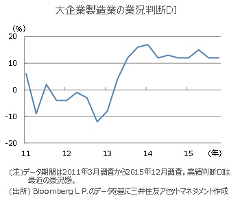 ■前回12月調査で2015年度の想定為替レートは1ドル=119円40銭でしたが、今回示される2016年度の数字は、これよりもドル安・円高水準となる見通しです。4月以降、実際のドル円レートが、2016年度の想定為替レートよりも大幅にドル安・円高に振れた場合、輸出企業などの業績下振れ要因となるため注意が必要です。