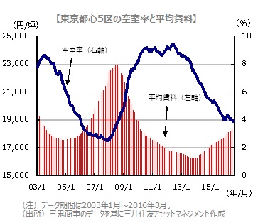 日本のリートはオフィスビルに特化したものが多く、金融緩和が進行する中、賃料の上昇は追い風です。東証REIT指数の昨年末からの上昇率は+3.9%(9月15日引け値ベース)と、日経平均の同▲13.8%と比べ、対照的な推移となっています。