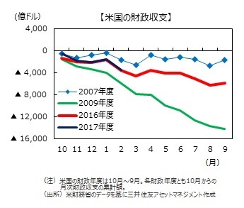 ■内容は、トランプ大統領の従来からの主張通り、国防省の予算が17年度予算(実績見込み)対比10%増と大幅な増加となっています。これに対して、環境保護局が同31%減、国務省が国際援助・開発支援を中心に同29%減、教育省が同14%減などとなっています。国防支出を増やす一方、非国