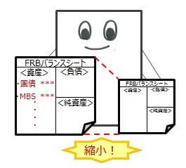 バランスシートとは、貸借対照表のことであり、財務の状態を表します。米国の中央銀行に相当する連邦準備制度理事会(FRB)のバランスシートは、2008年の深刻な景気後退への対応として、債券購入等により資金を市中に大量供給した結果、急膨張しました。景気が拡大軌道に乗った現在、膨張したバランスシートを通常に戻す(=『バランスシート縮小』)ことがFRBの課題となっています。