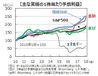 ■また、「金融」の1株当たり予想利益(12カ月先予想)を見ると、2017年12月から大きく上昇しています。12月22日に米税制改革法が成立しており、法人税率引き下げの効果が期待される見通しとなっています。